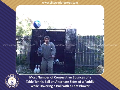 Most Number of Consecutive Bounces of a Table Tennis Ball on Alternate Sides of a Paddle while Hovering a Ball with a Leaf Blower