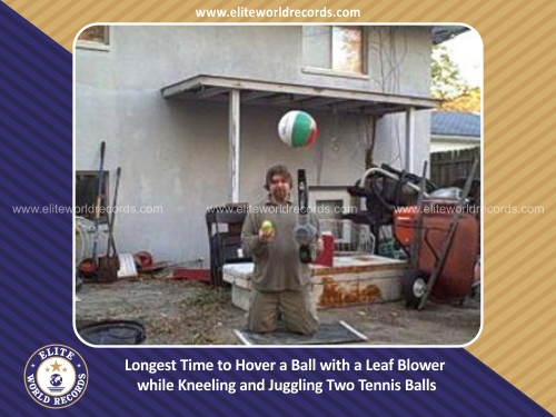 Longest Time to Hover a Ball with a Leaf Blower while Kneeling and Juggling Two Tennis Balls