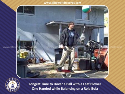 Longest Time to Hover a Ball with a Leaf Blower One Handed while Balancing on a Rola Bola