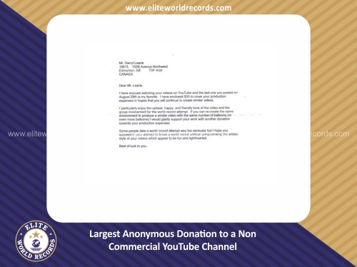 Largest Anonymous Donation to a Non Commercial YouTube Channel