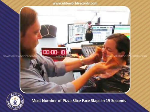 Most Number of Pizza Slice Face Slaps in 15 Seconds