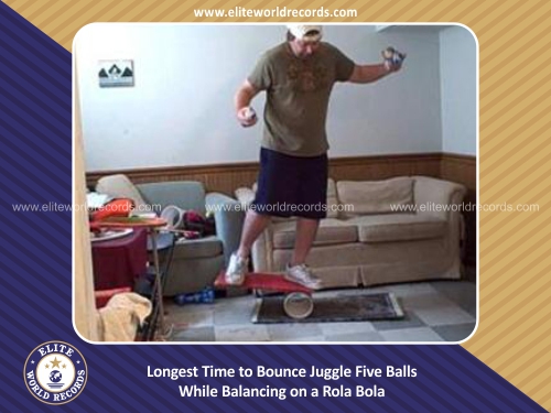 Longest Time to Bounce Juggle Five Balls While Balancing on a Rola Bola
