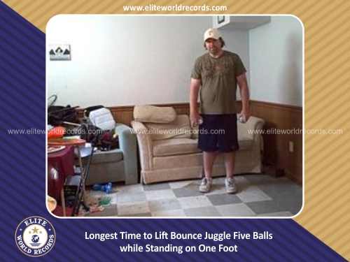 Longest Time to Lift Bounce Juggle Five Balls while Standing on One Foot