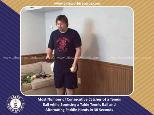 Most Number of Consecutive Catches of a Tennis Ball while Bouncing a Table Tennis Ball and Alternating Paddle Hands in 30 Seconds