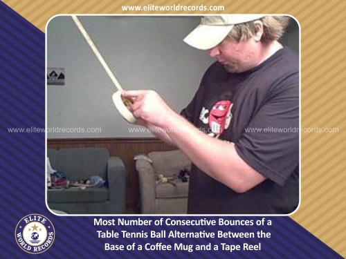 Most Number of Consecutive Bounces of a Table Tennis Ball Alternative Between the Base of a Coffee Mug and a Tape Reel