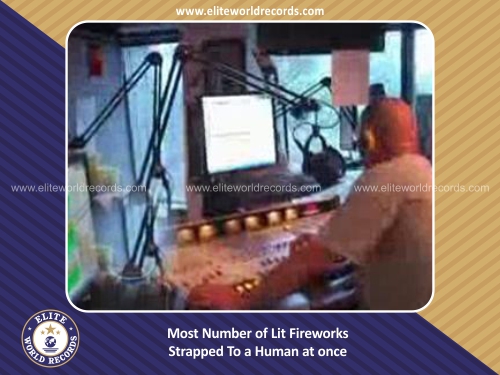 Most Number of Lit Fireworks Strapped To a Human at once