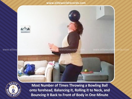 Most Number of Times Throwing a Bowling Ball onto forehead, Balancing It, Rolling It to Neck, and Bouncing It Back to Front of Body in One Minute