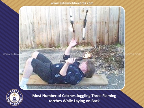 Most Number of Catches Juggling Three Flaming torches While Laying on Back