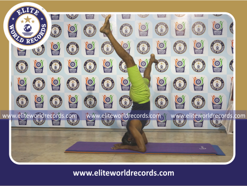 The Longest Time Holding Daksina Parsva Ekapada Salamba Sirsasana Yoga Pose Blindfolded by an Individual (Male) lasted for 2 Minutes and 5 Seconds was set by Dr.V.Gunasekaran, Founder-Maragatham Yogalayam at Coimbatore District, Tamil Nadu, India on January 4, 2020.
