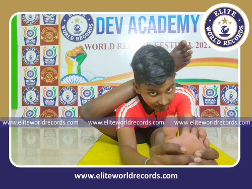 The Longest Time Holding Purna Skandasana Yoga Pose by an Individual (Minor-Male) lasted for 7 minutes 25 seconds, was set by U.Gautham Dev, Student of Dev Academy, in Nerkundram, Chennai District, Tamil Nadu, India on September 11, 2021.