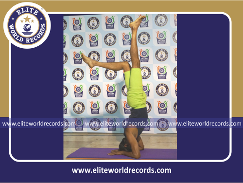 The Longest Time Holding Vama Ekapada Salamba Sirsasana Yoga Pose Blindfolded by an Individual (Male) lasted for 2 Minutes was set by Dr.V.Gunasekaran, Founder-Maragatham Yogalayam at Coimbatore District, Tamil Nadu, India on January 4, 2020.