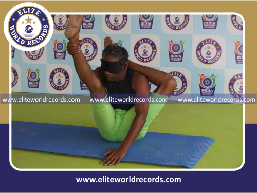 The Longest Time Holding Vama Ekapada Sirasa Krounchasana Yoga Pose Blindfolded by an Individual (Male) lasted for 2 Minutes was set by Dr.V.Gunasekaran, Founder-Maragatham Yogalayam at Udumalpet, Tirupur District, Tamil Nadu, India on September 15, 2019.
