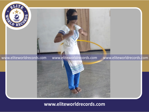The Longest Time to perform Hula Hoop Blindfolded by an Individual (Female) lasted for 47 minutes 48 seconds was set by B.B.Sindhu Maadhavi, student of Sivajothi Niruthiyalaya at Coimbatore District, Tamil Nadu, India on October 4, 2020.