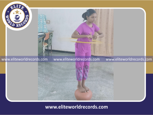 The Longest Time to perform Hula Hoop on an Inverted Mud Pot by an Individual (Minor - Female) lasted for 32 minutes 35 seconds was set by B.B.Boomithra, student of Sivajothi Niruthiyalaya at Coimbatore District, Tamil Nadu, India on October 11, 2020.
