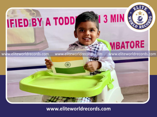 The Most National Flags Identified by a Toddler in 3 Minutes counted to 109 flags was set by Drona Pavanth, in Coimbatore District, Tamil Nadu, India on July 31, 2021.