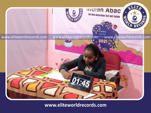 The Most Single Digit Addition Problems (3 Rows) Solved in 4 Minutes using Abacus by an Individual (Female) counted to 43 was set by V. Joshna, Student of Indian Abacus Private Limited, in Arakkonam, Ranipet District, Tamil Nadu, India on August 11, 2021.