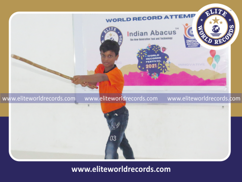 The Most Single Digit Mental Arithmetic Addition and Subtraction Problems (4 Rows) Solved in 3 Minutes while Performing Silambam Simultaneously by an Individual (Male) counted to 42 was set by M. Balakumaran, Student of Indian Abacus Private Limited, in Villivakkam, Chennai District, Tamil Nadu, India on August 12, 2021.