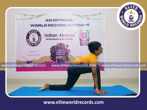 The Most Single Digit Mental Arithmetic Addition and Subtraction Problems (4 Rows) Solved in 5 Minutes while Performing Surya Namaskaras Simultaneously by an Individual (Male) counted to 60, was set by R.Tharun, Student of Indian Abacus Private Limited, in Chennai District, Tamil Nadu, India on August 7, 2021.