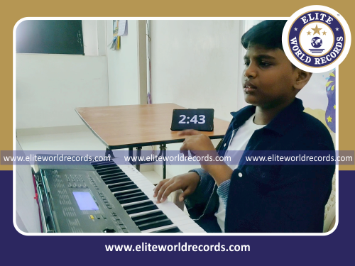 The Most Single Digit Mental Arithmetic Addition and Subtraction Problems (5 Rows) Solved in 3 Minutes while Playing Keyboard Simultaneously by an Individual (Male) counted to 67 was set by P.Manish, Student of Indian Abacus Private Limited, in Villivakkam, Chennai District, Tamil Nadu, India on August 4, 2021.