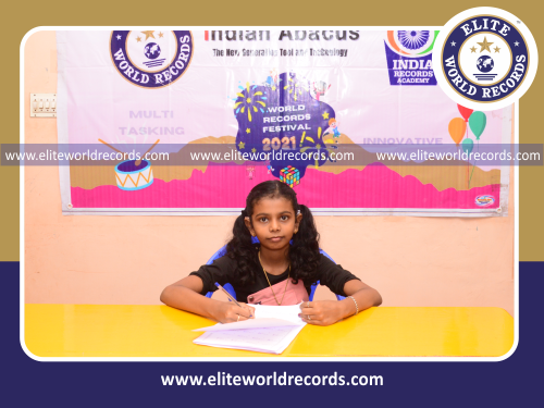 The Most Single Digit Mental Arithmetic Addition Problems (3 Rows) Solved in 12 Minutes by an Individual (Female) counted to 230, was set by S.Jeya Jerusha, Student of Indian Abacus Private Limited, in Tenkasi District, Tamil Nadu, India on September 25, 2021.
