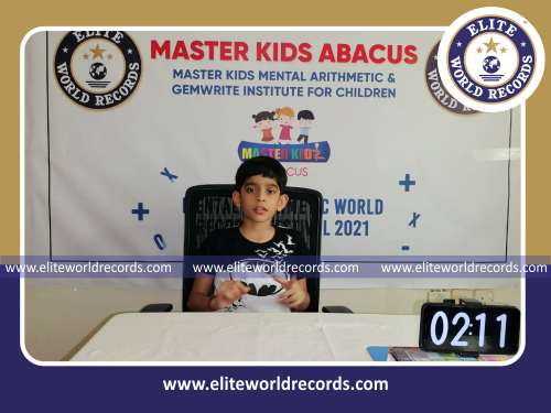The Most Single Digit Mental Arithmetic Addition Problems (3 Rows) Solved in 6 Minutes by an Individual (Male) counted to 114 was set by Deva Nadh Kavalan Keloth, Student of Master Kids Abacus, in Muscat, Sultanate of Oman, on September 24, 2021.