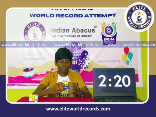 The Most Single Digit Mental Arithmetic Addition Problems (5 Rows) Solved in 3 Minutes while Solving Rubik Cubes Simultaneously by an Individual (Male) counted to 57 was set by M.Santhosh, Student of Indian Abacus Private Limited, in Nerkundram, Chennai District, Tamil Nadu, India on July 18, 2021.