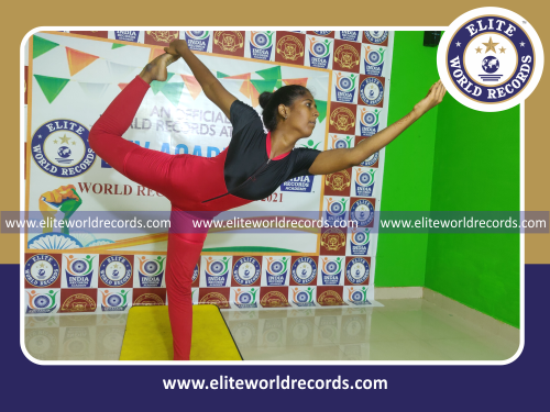The Most Yogasanas Performed by an Individual (Female) in 5 Minutes counted to 66 asanas, was set by S.Sindhu, Student of Dev Academy, in Nerkundram, Chennai District, Tamil Nadu, India on September 11, 2021.