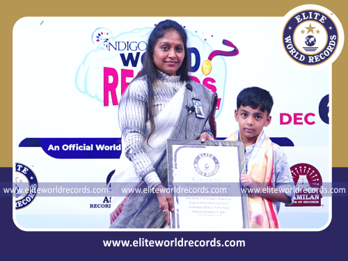 The Fastest Time to Solve 100 Single Digit Addition Problems (3 Rows) using Abacus by an Individual (Male) clocked to 6 Minutes 5 Seconds, was set by P.Sreeniketh, Student of Suguna International School in Coimbatore District, Tamil Nadu, India on December 6, 2021.