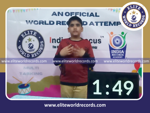 The Fastest Time to Solve 100 Single Digit Mental Arithmetic Multiplication Problems (2 Rows) by an Individual (Male) clocked to 3 minutes was set by R.S.Rakshith, Student of Indian Abacus Private Limited, in Chennai District, Tamil Nadu, India on September 5, 2021.