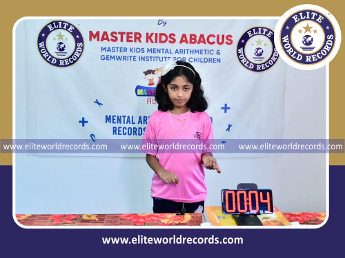 The Fastest Time to Solve 150 Two Digit Mental Arithmetic Addition and Subtraction Problems (2 Rows) by an Individual (Female) clocked to 6 minutes 24 seconds was set by Rose Mariya Albin, Student of Master Kids Abacus, in Thaliparamba, Kannur District, Kerala, India on September 24, 2021.