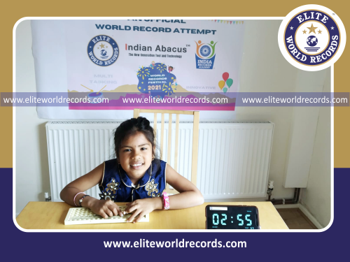 The Fastest Time to Solve 25 Two Digit Addition and Subtraction Problems (3 Rows) using Abacus while Listening to Songs by an Individual (Female) clocked to 3 minutes 2 seconds was set by Gayathiri Koushik, Student of Indian Abacus Private Limited, in Buckinghamshire District, United Kingdom, on September 4, 2021.