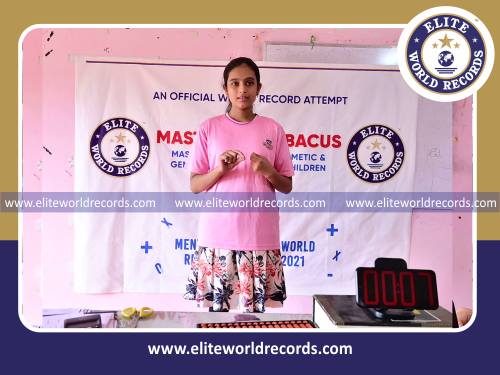 The Fastest Time to Solve 75 Two Digit Mental Arithmetic Addition and Subtraction Problems (3 Rows) by an Individual (Female) clocked to 4 minutes 25 seconds, was set by P.Thanmaya, Student of Master Kids Abacus, in Thaliparamba, Kannur District, Kerala, India on September 29, 2021.