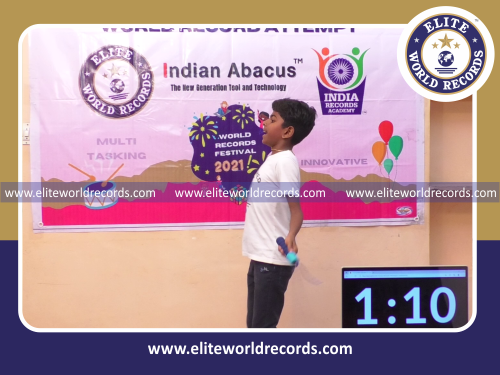 The Most Single Digit Mental Arithmetic Addition Problems (3 Rows) Solved in 4 Minutes while Skipping Simultaneously by an Individual (Male) counted to 78, was set by R.Jerin, Student of Indian Abacus Private Limited, in Tenkasi District, Tamil Nadu, India on September 25, 2021.