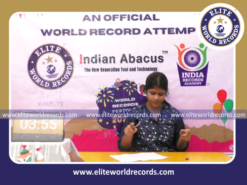 The Most Single Digit Mental Arithmetic Addition Problems (4 Rows) Solved in 4 Minutes by an Individual (Female) counted to 73 was set by J.Vishani, Student of Indian Abacus Private Limited, in Tenkasi District, Tamil Nadu, India on September 4, 2021.
