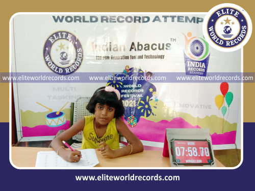 The Most Two Digit Mental Arithmetic Addition Problems (2 Rows) Solved in 10 Minutes by an Individual (Female) counted to 185, was set by S.Rithika, Student of Indian Abacus Private Limited, in Thiruthangal, Virudhunagar District, Tamil Nadu, India on September 29, 2021.
